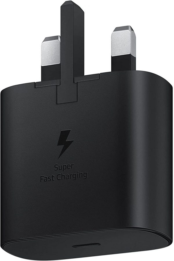 Charge your devices on the go with Samsung’s Travel Adapter (without cable) wall charger in black. Comes with 25W power for USB Type C charging.